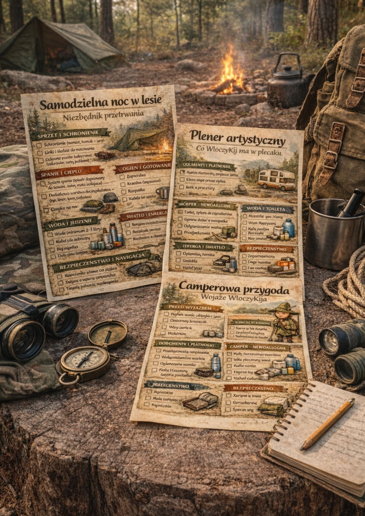 Pakiet 3-w-1 jeden zakup, trzy różne scenariusze wyprawy (las, plener, camper).